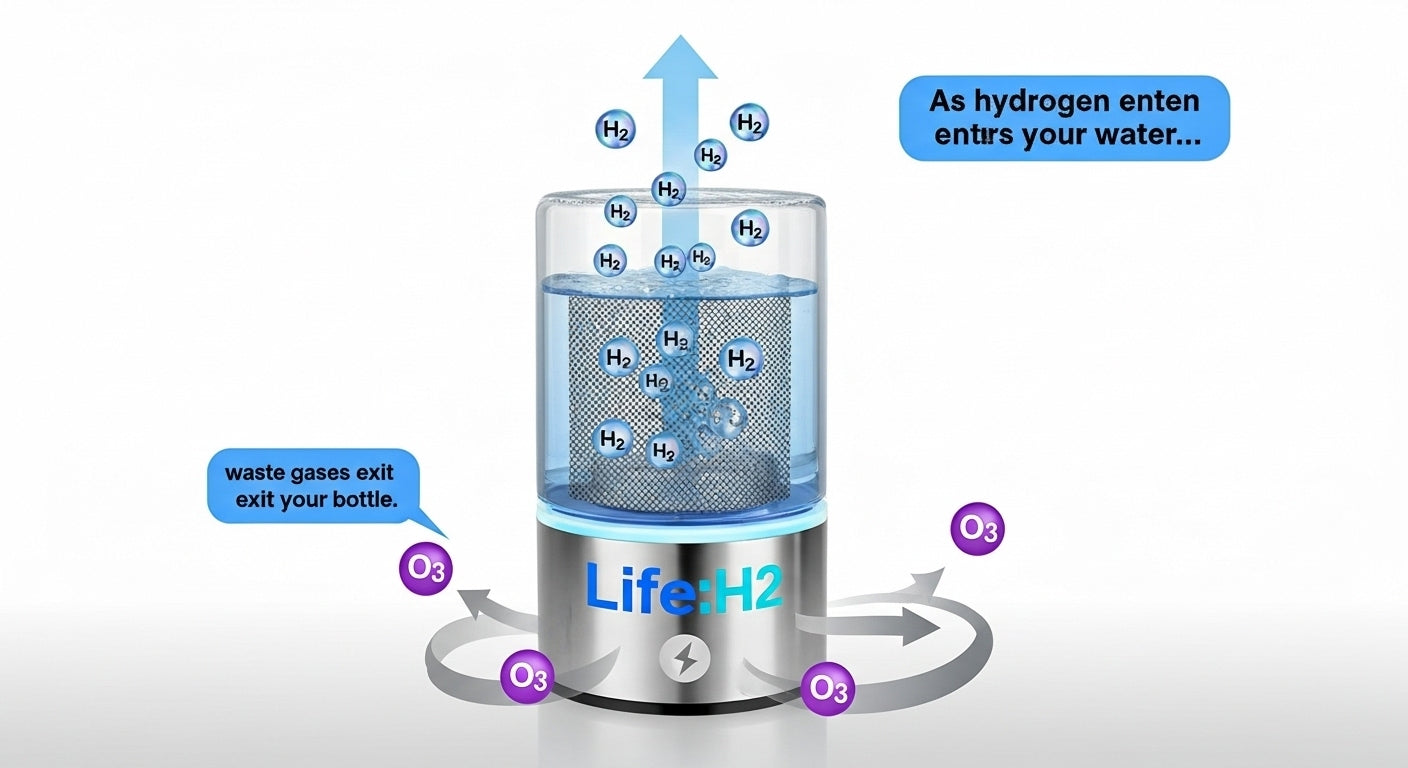 Hydrogen-rich water is simply regular water infused with molecular hydrogen (H₂). Early studies suggest potential antioxidant and recovery benefits—especially around fatigue and post-workout comfort—yet results vary and more research is needed. LifeH2 brings this into a clean, portable, USB-C bottle for an easy daily routine. Medical News Today+2WebMD+2